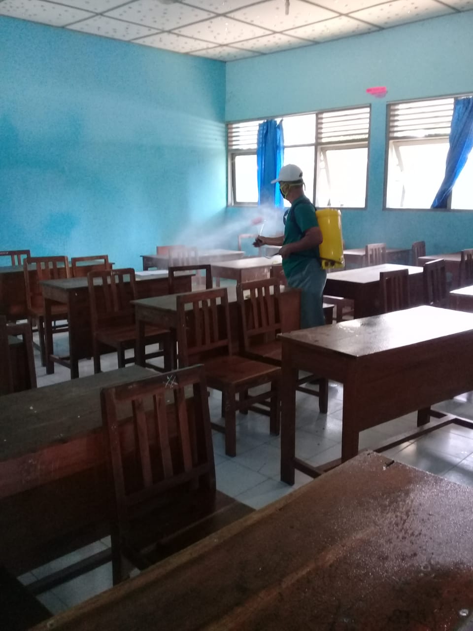 Penyemprotan Disinfektan di SMP MUHAMMADIYAH PLERET
