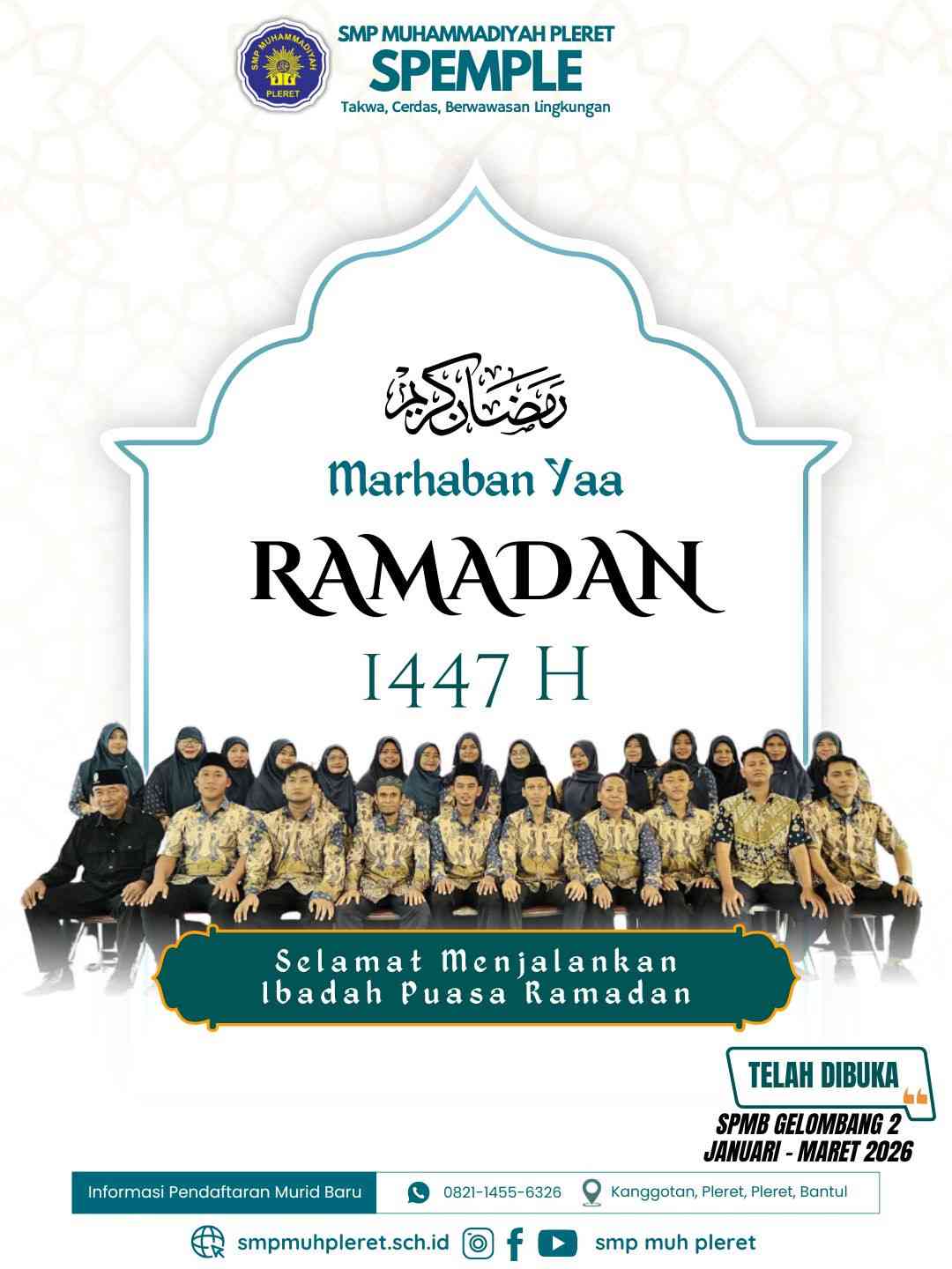 Dalam rangka menyambut bulan suci Ramadan yang penuh berkah, SMP Muhammadiyah Pleret mengadakan berbagai kegiatan keagamaan yang dilaksanakan selama hari masuk sekolah di bulan puasa. Kegiatan ini menjadi bagian dari komitmen sekolah dalam membentuk karakter Islami sekaligus meningkatkan ketakwaan seluruh warga sekolah.